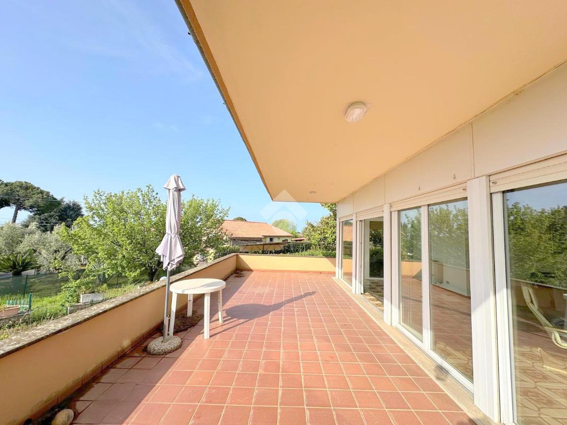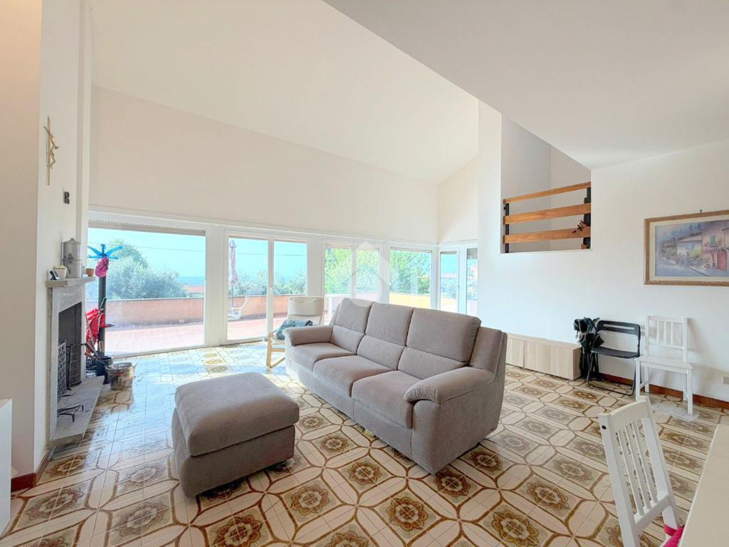Situata in posizione strategica lungo l’Appia, in direzione Genzano, questa elegante porzione di villa bifamiliare con Entrata Indipendente, si inserisce in un contesto residenziale riservato e tranquillo, ideale per chi desidera vivere immerso nel verde senza rinunciare alla comodità dei collegamenti. La proprietà si sviluppa su due livelli per una superficie complessiva di 295 mq, offrendo ambienti ampi, luminosi e ben distribuiti. Al piano terra l’ingresso accoglie con un pratico armadio a muro, conducendo a un magnifico salone doppio caratterizzato da grandi vetrate che donano una straordinaria luminosità naturale e una piacevole continuità con l’esterno. Il camino classico impreziosisce l’ambiente, rendendolo caldo e accogliente. Dal salone si accede direttamente a un ampio terrazzo panoramico, perfetto per momenti di relax o convivialità. La cucina, abitabile e spaziosa, dispone di uscita diretta sul giardino, dove troviamo un’area attrezzata con forno a legna e zona barbecue, ideale per vivere appieno gli spazi esterni. Completa il piano una camera da letto e un bagno finestrato con doccia. Il primo piano si apre su una grande sala relax, uno spazio versatile perfetto come zona living secondaria, studio o area dedicata al tempo libero. La zona notte comprende tre camere da letto, tra cui una padronale con bagno interno e balcone privato, oltre a un ulteriore bagno a servizio del piano. Il piano seminterrato, accessibile sia internamente che dall’esterno, ospita un ampio garage che offre la possibilità di essere in parte destinato a sala hobby, palestra o spazio multifunzionale. La proprietà è circondata da un terreno di 3000 mq, che garantisce privacy, ampi spazi verdi e molteplici possibilità di utilizzo. Dotata di infissi nuovi con doppio vetro, portone blindato, cancello automatico, climatizzatori al piano superiore e pannelli fotovoltaici, la villa assicura comfort, sicurezza ed efficienza energetica. Luminosa, panoramica e con ottima esposizione, la casa si presenta in buono stato manutentivo ed è subito abitabile, rappresentando una soluzione ideale per famiglie o per chi è alla ricerca di una residenza spaziosa in un contesto tranquillo ma ben collegato.